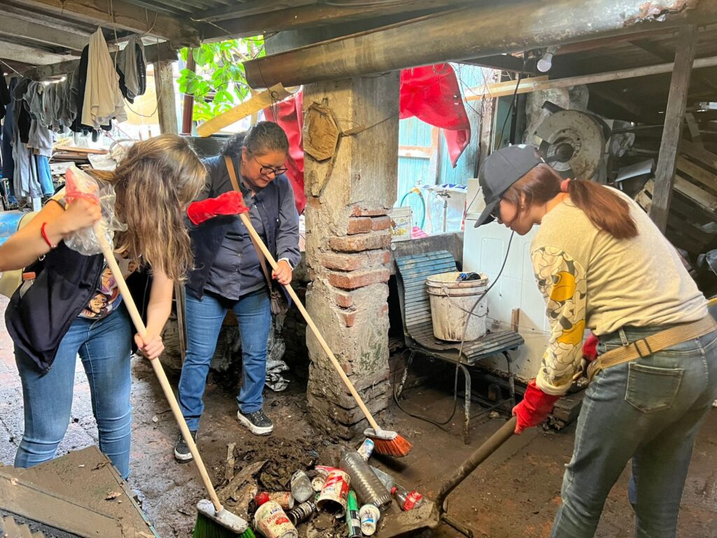 También, el personal del Sistema Municipal DIF apoyó en las labores de limpieza en las viviendas afectadas y llevó a cabo las validaciones correspondientes para procurar que cada familia reciba la atención y el apoyo que requiere.