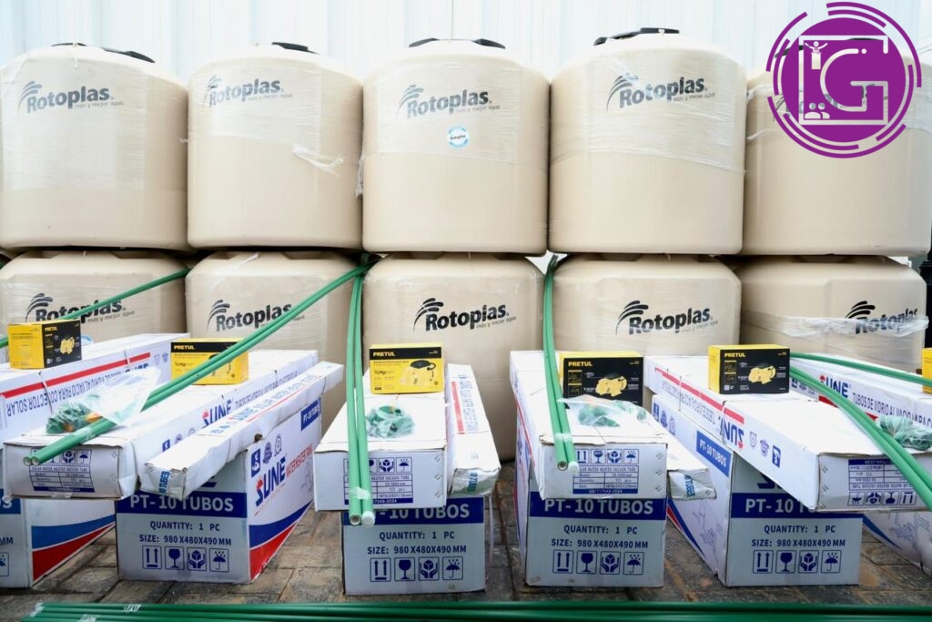 Los productos ofrecidos incluyen tinacos y cisternas para almacenamiento de agua; calentadores solares para ahorro de energía; láminas y bultos de cemento para construcción; carretillas con herramientas para trabajo; juegos de baño y colchones.