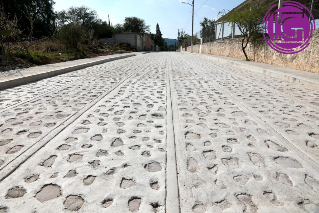 Los trabajos se aplicaron en un total de mil 385.97 metros cuadrados de urbanización, 224 mil 80 mililitros de pavimento empedrado empacado en mortero de 150 kg/cm2 de 15 centímetros de espesor, 424.07 mililitros de guarnición de concreto f’c=150kg/cm2, 420.96 metros cuadrados de banqueta de 8 centímetros de espesor de f’c=150 kg/cm2 y en 72.77 mililitros de dentellón de 15×20 centímetros de concreto de f’c=150 kg/cm2.
