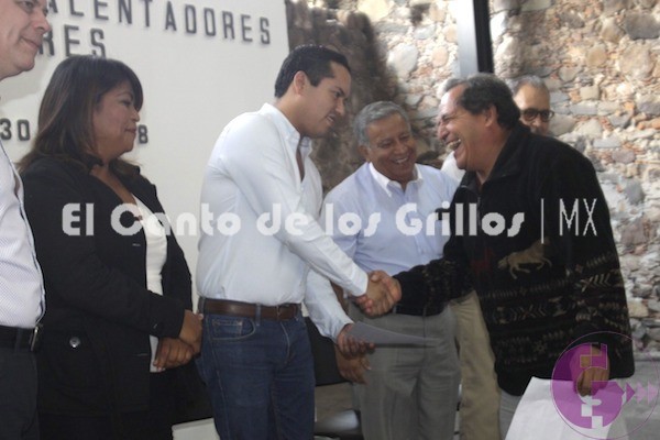 Acompañaron al alcalde en la línea de honor: Alfredo Piñón Espinoza, presidente de la Comisión de Desarrollo Social; Fernando Orozco Vega, secretario de Desarrollo Urbano y Obras Públicas y María del Carmen Herrera, beneficiaria.