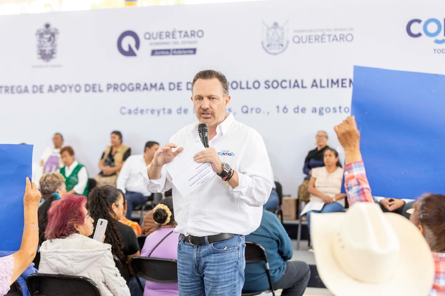 El titular del Poder Ejecutivo estatal, Mauricio Kuri González, en compañía del presidente municipal de Cadereyta de Montes, Miguel Martínez Peñaloza, encabezó la entrega de apoyos del Programa de Desarrollo Social Alimentario del estado de Querétaro, así como las Tarjetas de Seguro de Vida e Incapacidad.