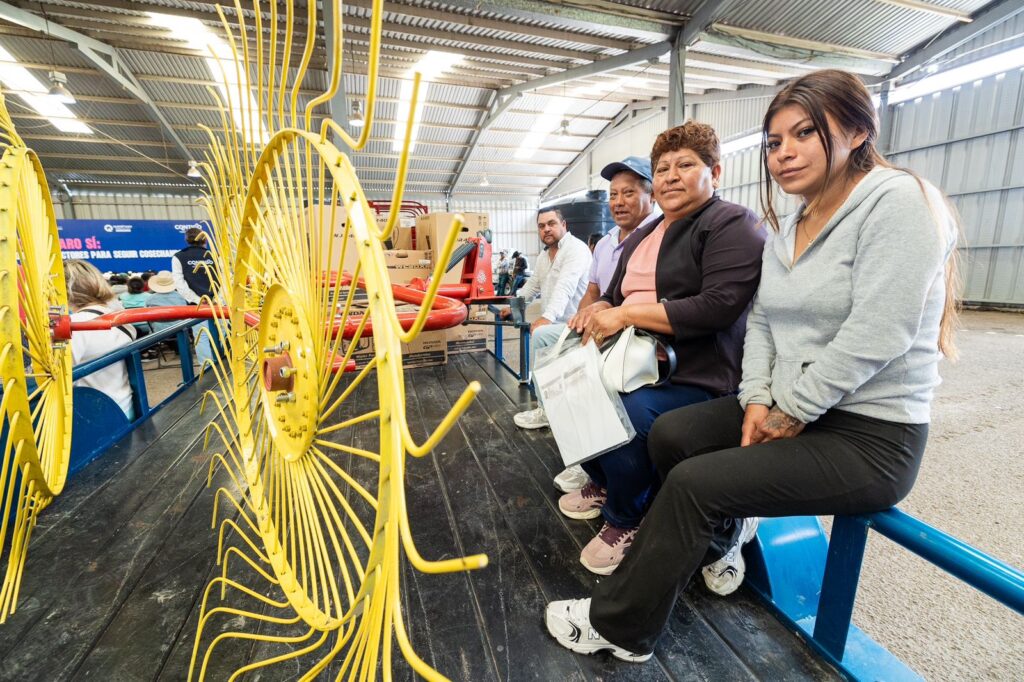 Desde el pabellón comercial del Centro Expositor donde se congregaron los beneficiarios del programa estatal, el mandatario queretano atestiguó la disposición del apoyo que se convierte en semillas, insumos, maquinaria y equipos; así como colmenas, suplementos alimenticios, sistemas de riego y tecnología de punta, que ayudarán a fortalecer la productividad del sector.