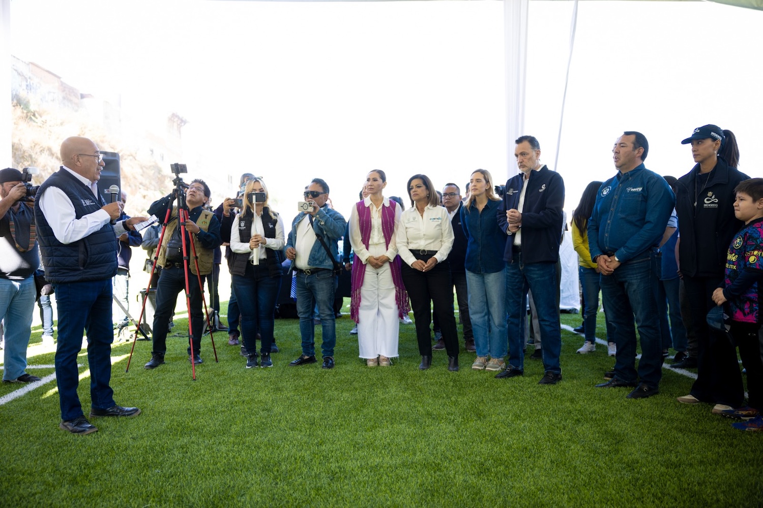 “Aprovechen muchísimo esta cancha, cuídenla, véanla de verdad como un símbolo de compañerismo, de hacer equipo, de hacer deporte, porque es lo que queremos, impulsar su desarrollo, impulsar su futuro, y estos proyectos, pues son el camino para hacerlo”, subrayó.