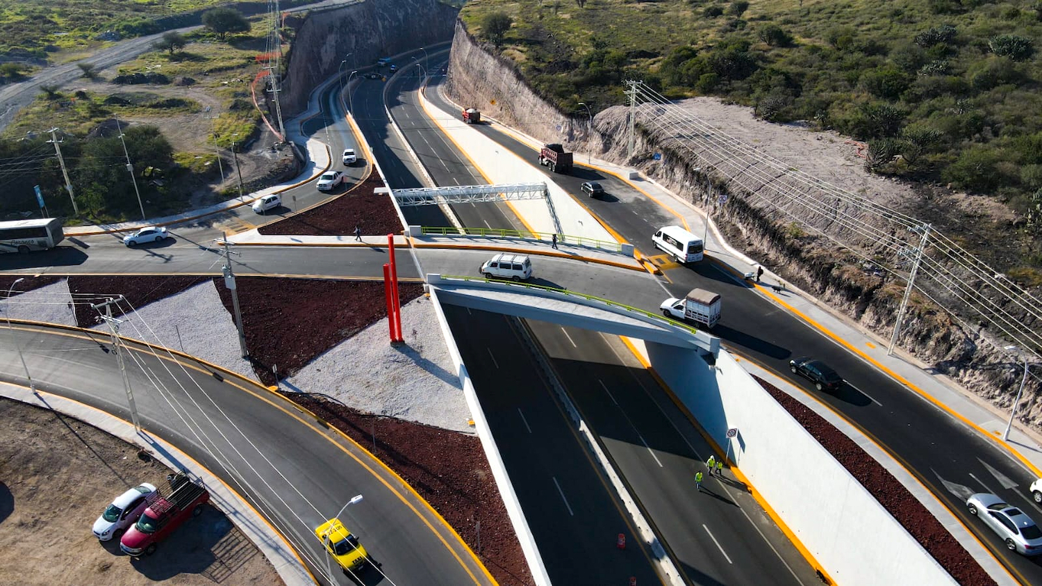 “Señor gobernador, con este Distribuidor Vial concluimos una de las acciones más importantes de este proyecto. Con él separamos los distintos destinos, hacia el macrolibramiento y la carretera estatal 411 que te dirige a Huimilpan. Con gran gusto venimos hoy, a hacer entrega de esta infraestructura vial. Como pueden ver, esta serie de acciones responden a una necesidad impostergable”, manifestó.