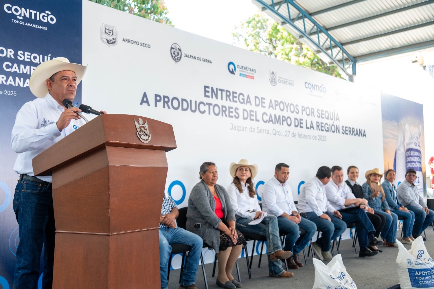 Desde el Teatro del Pueblo de Jalpan de Serra, y en compañía del presidente municipal, Rubén Hernández Robles, el mandatario estatal entregó los apoyos a más de dos mil 429 productores del municipio anfitrión, así como de Arroyo Seco, Landa de Matamoros y Pinal de Amoles.