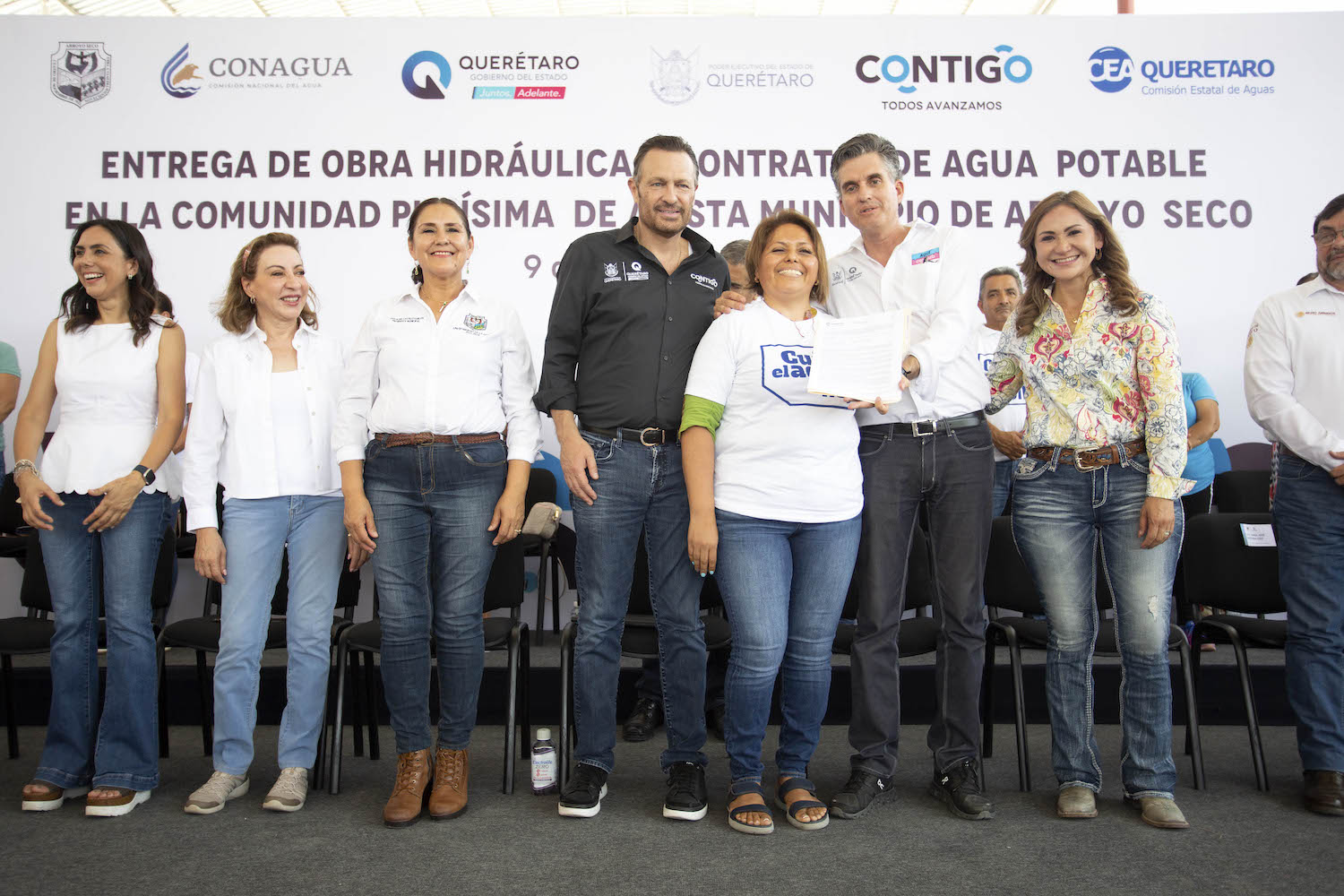 En tanto, la presidenta municipal de Arroyo Seco, Ofelia del Castillo Guillén, reconoció la visión del gobernador por atender las necesidades que tienen las familias serranas; agradeció el trabajo que se ha realizado en coordinación con Conagua y CEA para que hoy cuenten con su contrato de agua potable.