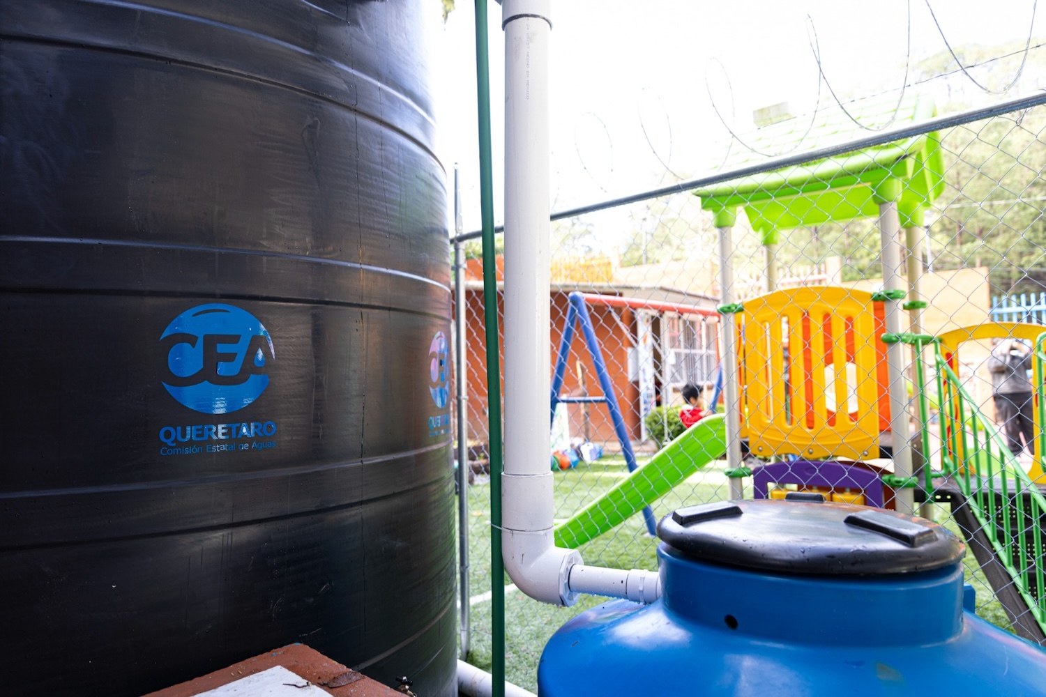 El director adjunto de enlace institucional de CEA, Jorge Ortega González, explicó que la cosecha de agua en dicha escuela permite captar diez mil litros del líquido, recurso que se utiliza para el riego y los sanitarios de la institución.
