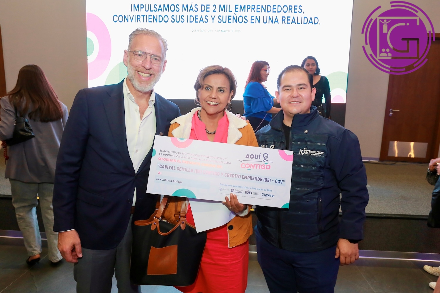 En representación de CGV, Alejandra Ramírez Daza, explicó que en la caja se sienten orgullosos de participar en un proyecto que permite cumplir sueños, y a través del programa abonan a mejorar la calidad de vida de los emprendedores queretanos; ya que en conjunto con la administración estatal han apoyado a más de 170 emprendedores.