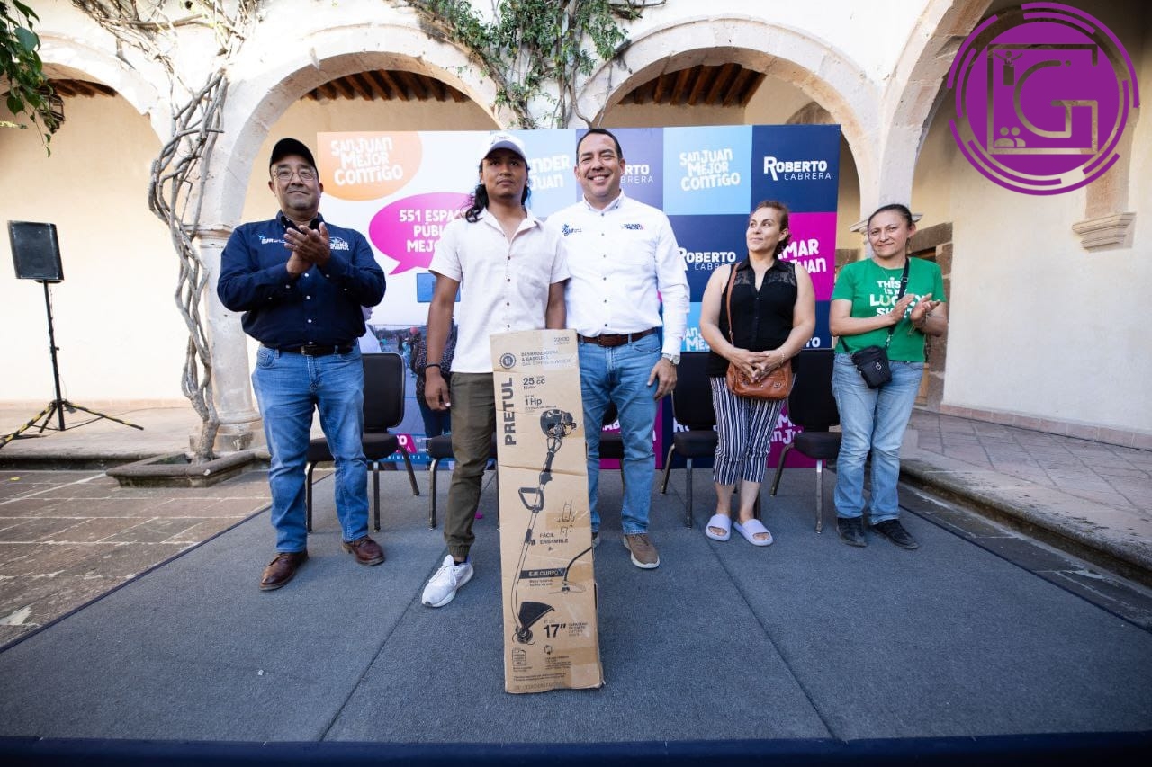 El presidente municipal de San Juan del Río, Roberto Cabrera, encabezó la entrega de 54 paquetes de artículos a bajo costo para el hogar, tales como kits de cocina, sanitarios, de jardinería, láminas y tinacos, evento que se llevó a cabo en las instalaciones de la exhacienda de Cerro Gordo, ubicada al Oriente de la demarcación, y que será sede del Centro de Atención Municipal (CAM).