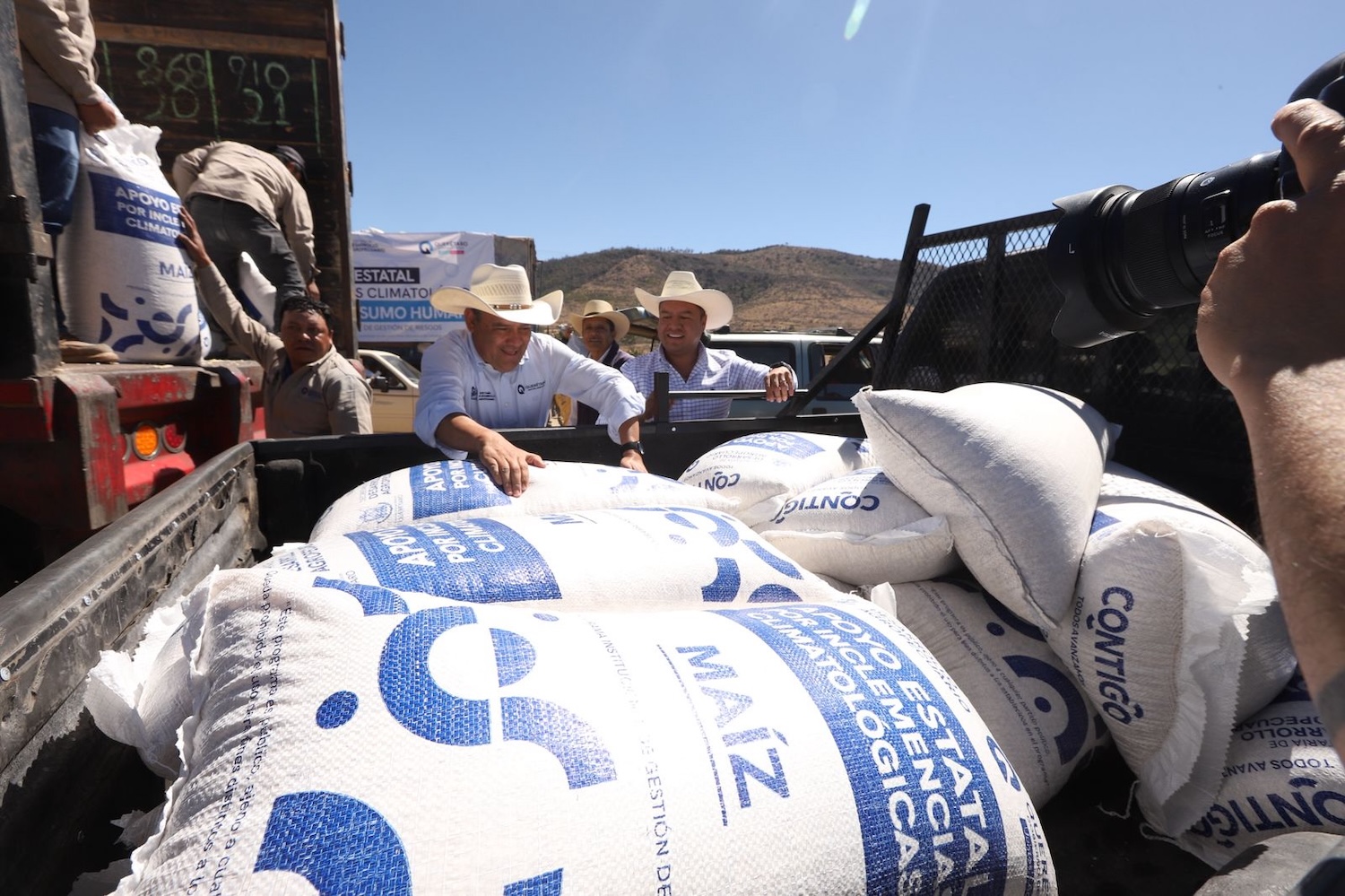 El secretario de Desarrollo Agropecuario, Rosendo Anaya, encabezó en Huimilpan, la dispersión de 311 toneladas de maíz para consumo humano, por parte del gobierno del estado, como apoyo emergente a 932 productores que sufrieron afectación en casi dos mil hectáreas de siembra de temporal y que vieron mermada su cosecha por la sequía prolongada.