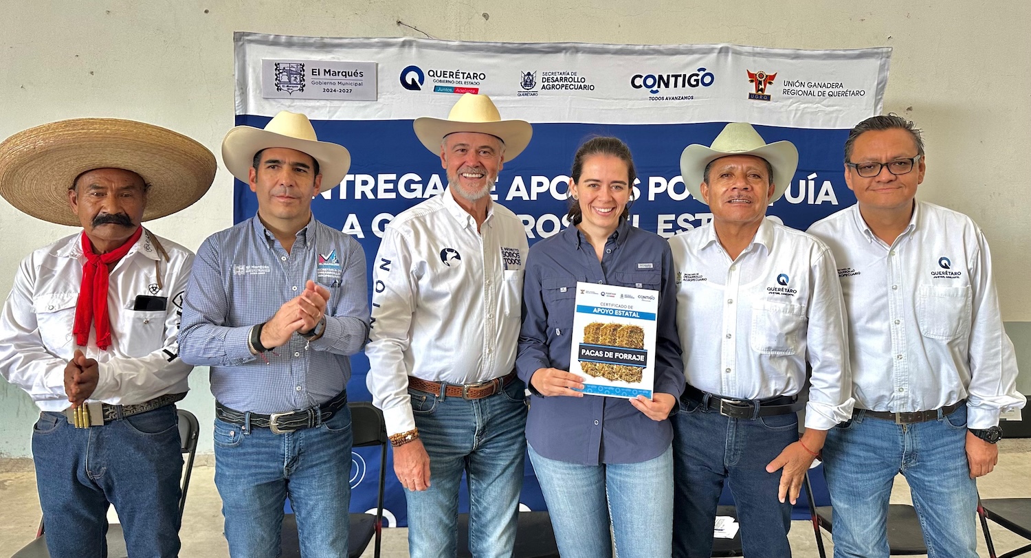 El secretario técnico de la Secretaría de Desarrollo Agropecuario, José González Ruíz, entregó en el municipio de El Marqués, cuatro mil 750 pacas de forraje, en el marco del programa de apoyo por sequía a ganaderos de pequeña escala, beneficiando a un total de 190 productores pecuarios.