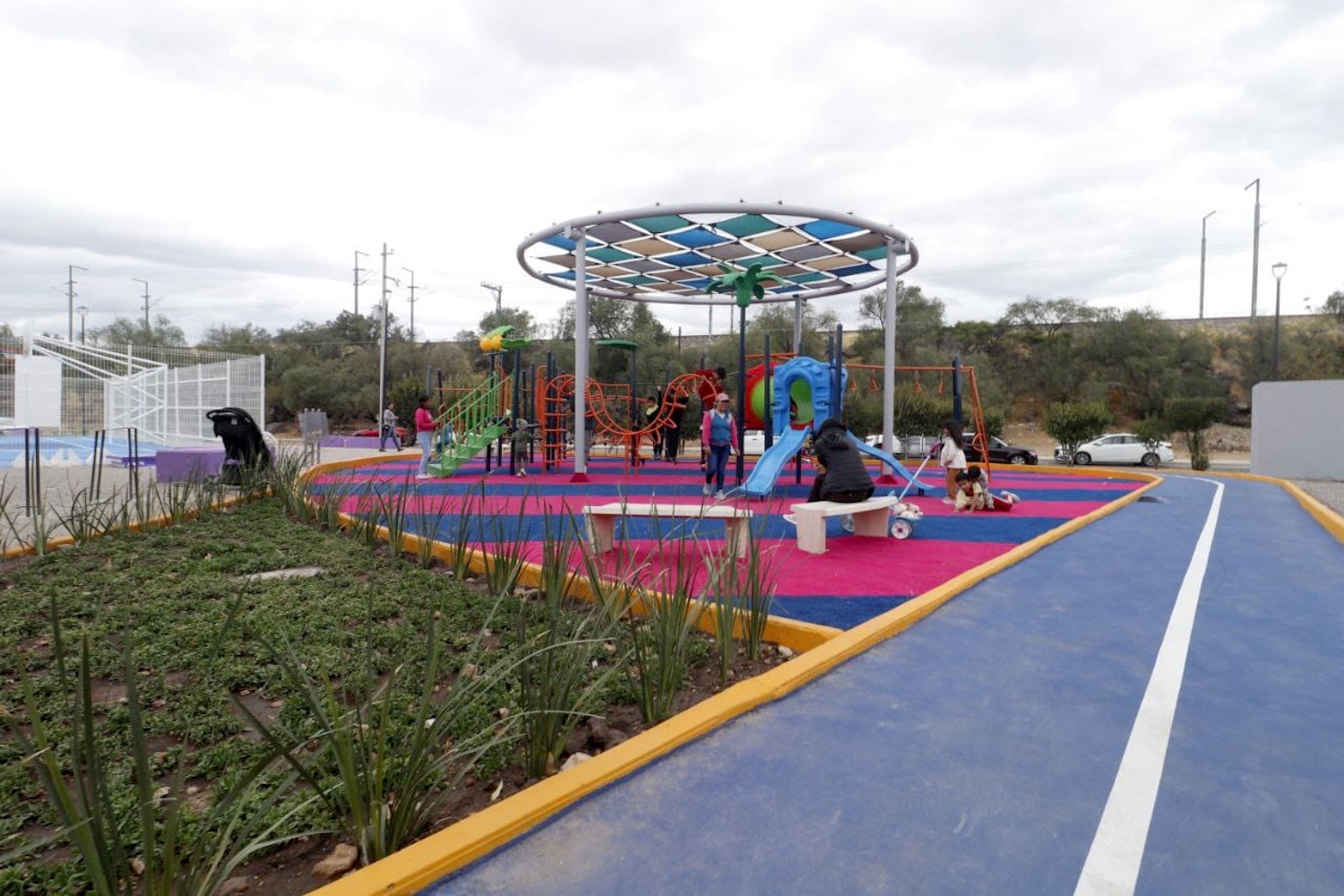 El parque se rehabilitó en su totalidad, se colocó un área de mesas, se instalaron juegos infantiles, se dio mantenimiento a las áreas verdes, se puso una techumbre en un área de usos múltiples y se cercó y recuperó la cancha que fue intervenida con el apoyo de voluntarios de Sejuve y vecinos de la zona.