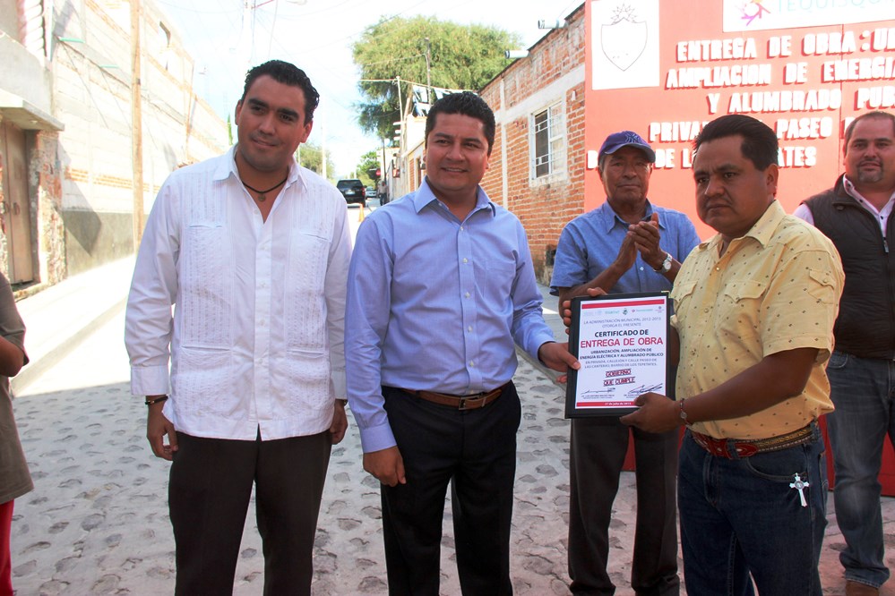 El Presidente Municipal de Tequisquiapan, Luis Antonio Macías Trejo, entregó obras de urbanización y ampliación de energía eléctrica por un monto de 2 millones 150 mil 406 pesos a los habitantes de Privada de las Canteras y Paseo de las Canteras, en el Barrio de los Tepetates de esta cabecera municipal.