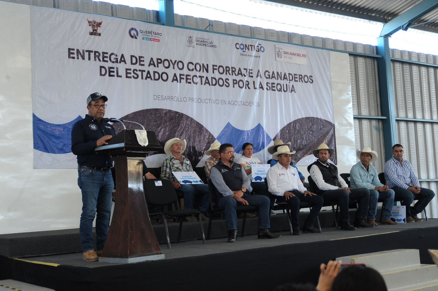 En beneficio de 242 productores pecuarios del municipio de San Juan del Río y con una inversión cercana a un millón de pesos, fueron entregadas 242 toneladas de forraje, como parte del Programa Emergente de Apoyo por Sequía, implementado por el gobierno del estado de Querétaro, a través de la Secretaría de Desarrollo Agropecuario (Sedea), en equipo con el gobierno municipal sanjuanense.