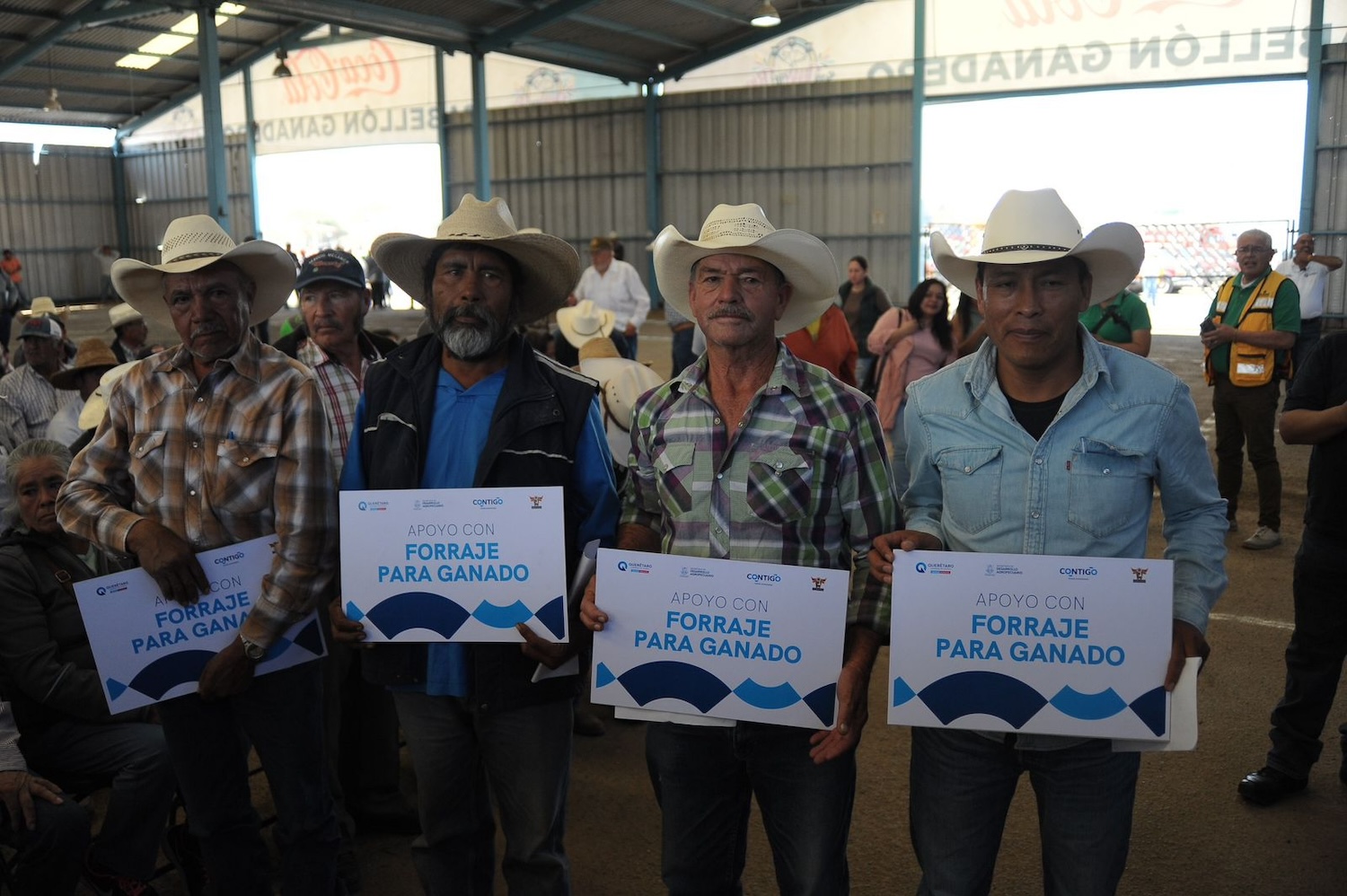 Al evento acudieron el presidente de la Unión Ganadera Regional de Querétaro, Romualdo Moreno Gutiérrez; el director de Fomento y Desarrollo Agropecuario, Luis Gerson Rincón Núñez; el presidente de la Asociación Ganadera Local de San Juan del Río, Jesús Navarrete Domínguez; el presidente de la Unión de Ejidos “Adolfo López Mateos”, Adrián Miranda Bárcenas, así como productores beneficiados.