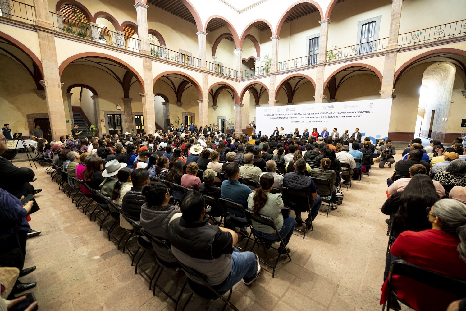 Alcaraz Gutiérrez detalló que hoy se brinda certeza legal mediante la entrega de 35 testimonios del programa Certeza Patrimonial, 16 actas de asamblea del programa Condominio Contigo, 122 títulos de propiedad del programa Regularización de Predios, 90 escrituras del programa de Regularización de Asentamientos Humanos de la Secretaría de Desarrollo Social y 15 más del programa Regulariza tu Patrimonio del Instituto de Vivienda del Estado de Querétaro.
