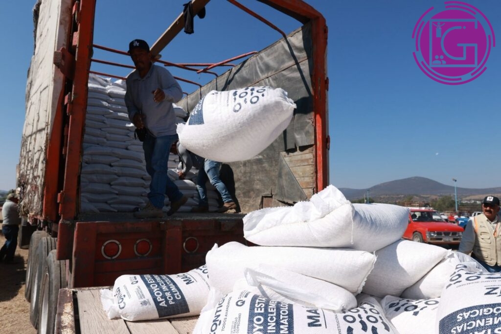 El secretario de Desarrollo Agropecuario, Rosendo Anaya, encabezó en Colón, la dispersión de 340 toneladas de maíz para consumo humano, por parte del gobierno del estado, como apoyo emergente a 995 productores de temporal que sufrieron afectación en más de dos mil hectáreas y vieron mermada su cosecha por eventos climatológicos.