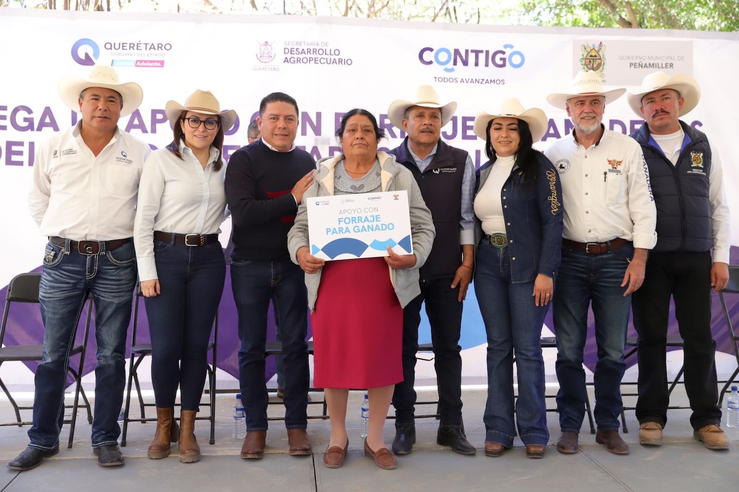 En el marco del Programa Emergente para Productores Agropecuarios Afectados por la Sequía, el secretario técnico de la Secretaría de Desarrollo Agropecuario, José González, entregó alimento para ganado en los municipios de Tolimán y Peñamiller; esta acción permitirá otorgar, aproximadamente, mil kilos de forraje por beneficiario, a un total de 163 ganaderos en pequeña escala, en cada uno de dichos municipios.