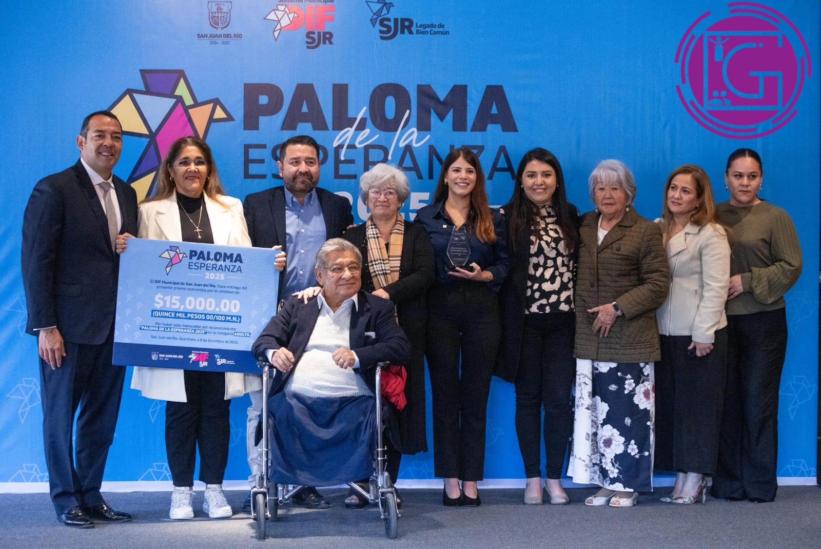 Como un reconocimiento por su participación en el desarrollo de la sociedad de San Juan del Río, la presidenta del Sistema Municipal para el Desarrollo Integral de la Familia (DIF), Gina Sánchez Barrios, y el presidente municipal sanjuanense, Roberto Cabrera Valencia, entregaron los galardones “Paloma de la Esperanza 2025” a tres personas en las categorías Infantil, Juvenil y Adulto.
