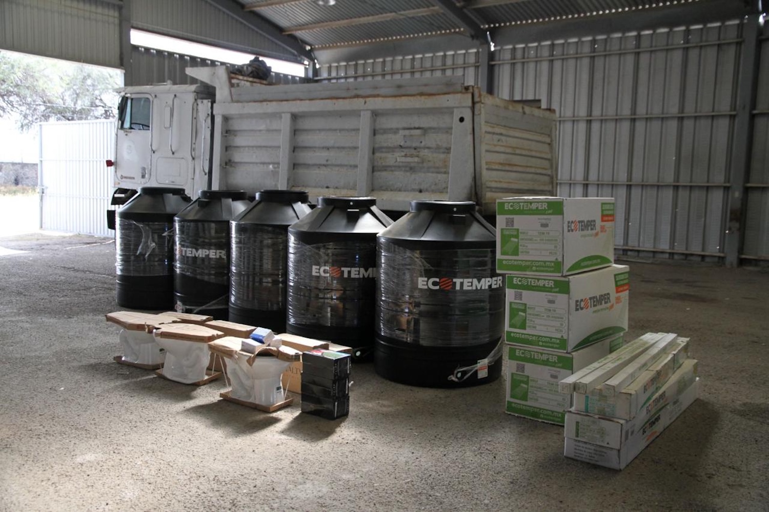 Los productos entregados fueron 219, de los que destacan calentadores, tinacos, láminas, bombas commander, juegos de baño, regaderas, cilindros de gas, calentadores de paso, botes de pintura e impermeabilizante, luminarias, estufas ecológicas y kits de jardinería.