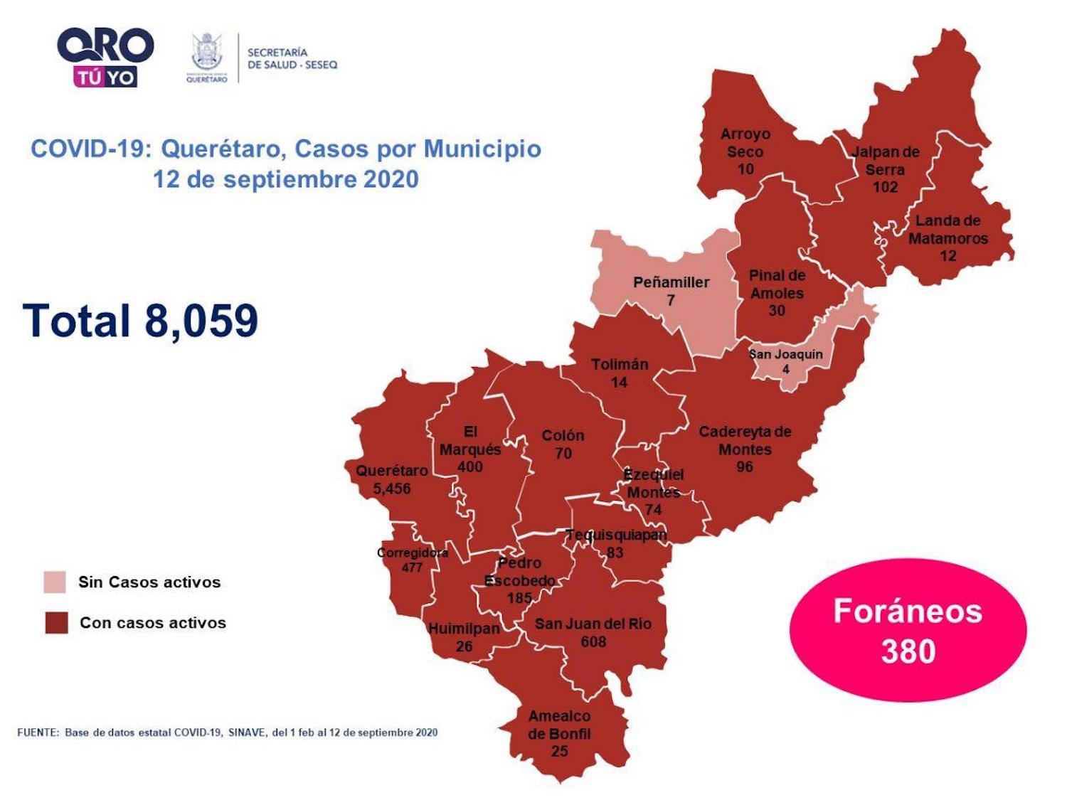 En Querétaro dos hombres de 23 y 45 años con hipertensión arterial, una mujer de 26 con enfermedad pulmonar obstructiva crónica, tres hombres de 39, 53 y 106 y una mujer de 74 sin comorbilidad, una mujer de 41 con hipertensión arterial y obesidad, un hombre de 45 con hipertensión arterial e insuficiencia renal, un hombre de 52 con obesidad, uno más de 59 con diabetes e hipertensión arterial, una mujer de 63 con diabetes y obesidad, un hombre de 64 con diabetes, insuficiencia renal y tabaquismo, una mujer de 71 con cardiopatía y obesidad y un hombre de 74 años con hipertensión arterial y cardiopatía, que se encontraban hospitalizados, fallecieron a causa de la enfermedad Covid-19.
