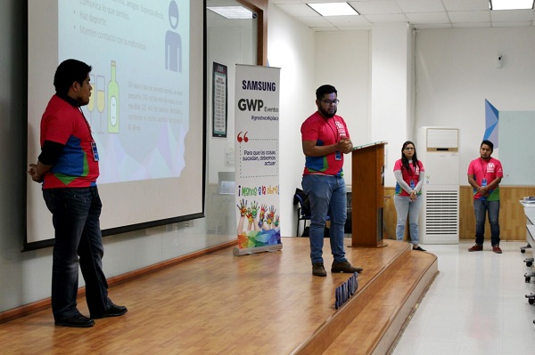 La ponencia fue impartida por Daniel Ledezma y Carlos Aguirre, estudiantes de la Ingeniería en Biotecnología de la UTC quienes, junto con Brenda Contreras de la carrera de Tecnologías de la Información y Comunicaciones (TIC) y Luis Ortiz de Mantenimiento área Instalaciones, de manera dinámica presentaron el tema sobre la prevención de adicciones realizando con estas acciones un llamado al cambio, esto, gracias a las facilidades otorgadas por el personal directivo de Samsung como parte de sus procesos de mejora continua permitiendo que, tanto Gobierno del Estado, como el sector educativo compartan su experiencia y este tipo de programas.
