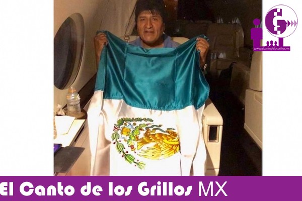 En el mismo tuit, se observa una foto del exmandatario boliviano en un asiento de la aeronave y portando una bandera mexicana.