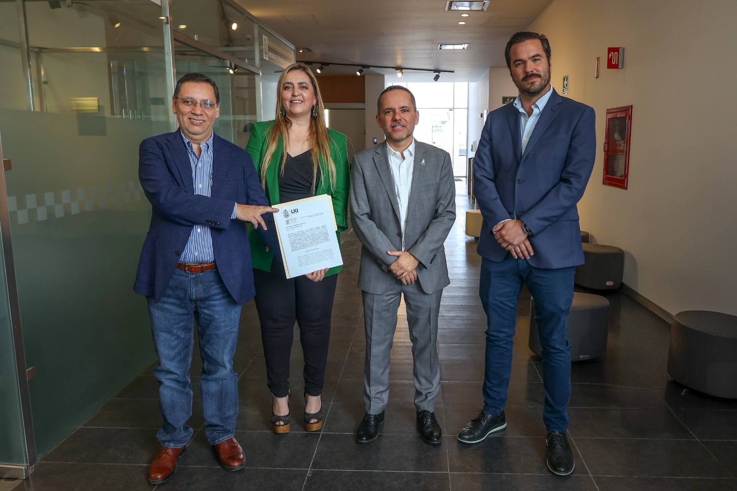 Los diputados integrantes de la Mesa Directiva en la LXI Legislatura del estado de Querétaro, presidida por el diputado Gerardo Ángeles; e integrada por los diputados Ulises Gómez, vicepresidente; y como secretarios, Perla Flores y Mauricio Cárdenas, presentaron e ingresaron en Oficialía de Partes, la iniciativa de Acuerdo por el que la LXI Legislatura del estado de Querétaro, a través de su Mesa Directiva, acompaña a la titular del Poder Ejecutivo federal, Claudia Sheinbaum Pardo, y le exhorta respetuosamente a continuar con la protección a los sectores industrial, agrícola, comercial y de negocios, detonantes de la planeación y estabilidad financiera del estado de Querétaro y México, derivado de las acciones en política exterior respecto de la imposición de aranceles.