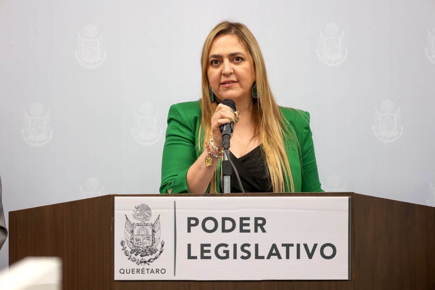 Durante su intervención, la diputada Perla Flores, expresó que desde el Grupo Parlamentario del Partido Verde Ecologista de México (PVEM) en la Legislatura del Estado de Querétaro, respaldan de manera decidida esta iniciativa de exhorto que reconoce y acompaña la política exterior impulsada por la presidenta Claudia Sheinbaum Pardo, especialmente en materia de protección a los sectores estratégicos de nuestro país frente a escenarios de presión comercial internacional. Indicó que Querétaro es un estado con un peso económico creciente, que destaca por su innovación, su desarrollo industrial y su papel clave en sectores como el automotriz, aeroespacial, tecnológico y logístico, por lo que cualquier amenaza externa, como lo sería la imposición de aranceles injustificados, debe ser enfrentada con visión de Estado y con una política firme, como la que ha impulsado el gobierno federal.