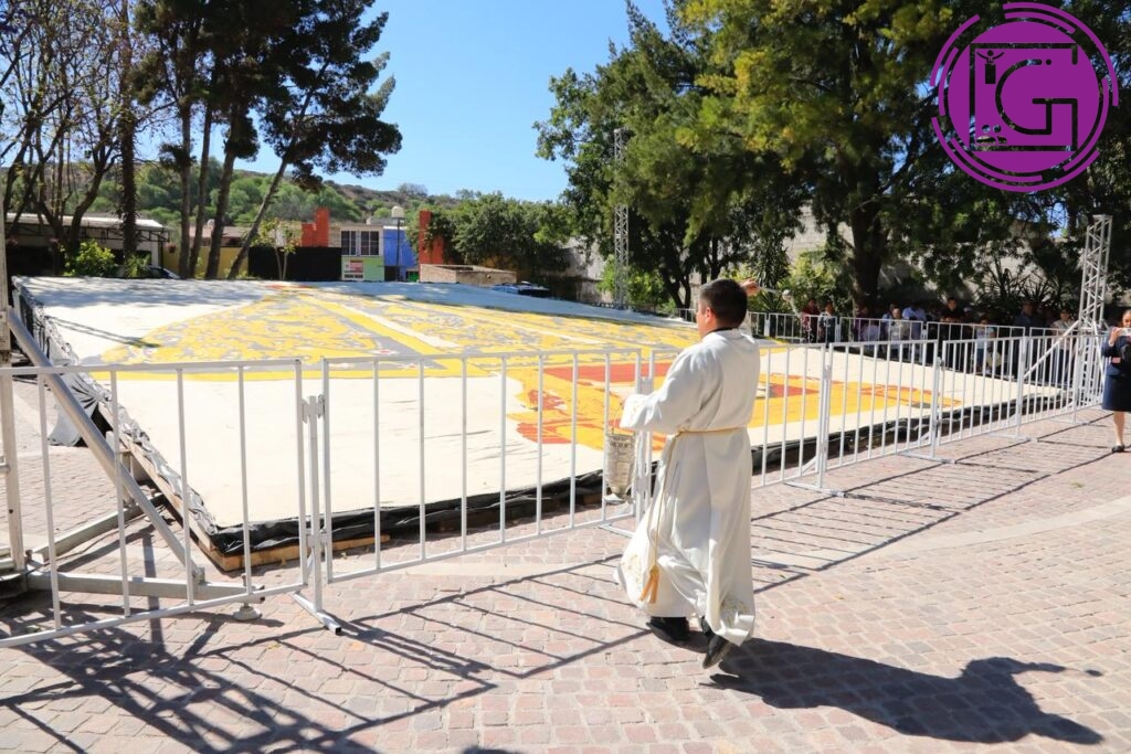 El Mosaico Monumental de la Virgen de los Dolores de Soriano es una obra de arte textil elaborada por siete maestros del telar de pedal de Colón, que se exhibirá en la Huerta del Buen Pastor durante los últimos tres días de la festividad.