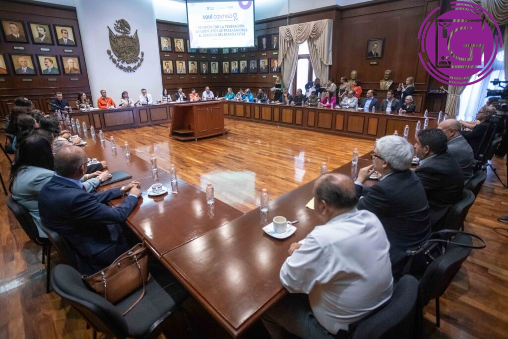 Como gobierno, nuestra tarea permanente es mejorar la gestión pública, orientarla al progreso de los trabajadores, así como al bienestar de las familias queretanas, afirmó el gobernador, Mauricio Kuri, al reunirse con integrantes de la Federación de Sindicatos de Trabajadores al Servicio del Estado (FSTSE), a quienes manifestó que en su administración seguirán encontrando puertas abiertas, escucha y voluntad para resolver.