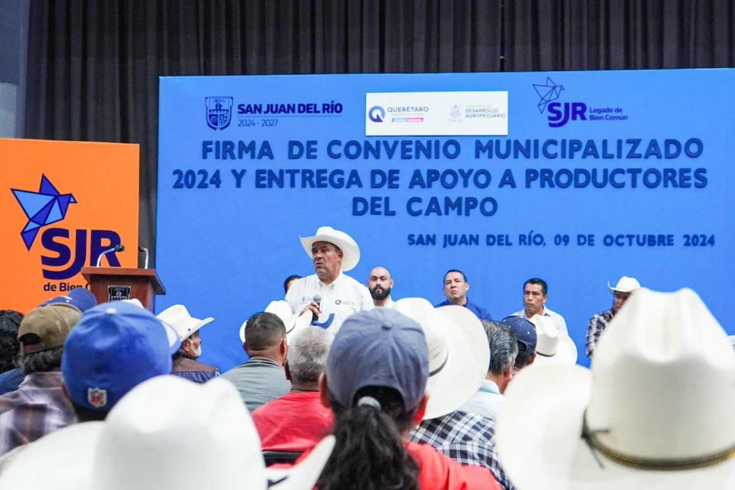 El secretario de Desarrollo Agropecuario, Rosendo Anaya, encabezó la firma del convenio para el programa “Contigo en Concurrencia para la Productividad Rural 2024”, que con participación tripartita del gobierno del estado, municipios y productores de San Juan del Río, suman una bolsa de 15 millones de pesos.