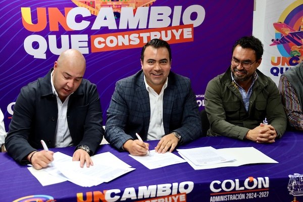 El alcalde Gaspar Trueba Moncada y el presidente de la Cámara Mexicana de la Industria de la Construcción de Querétaro (CMIC), Álvaro Ugalde Chaparro, firmaron un convenio de colaboración que busca generar un impacto positivo en la comunidad y promover el desarrollo del municipio de Colón.