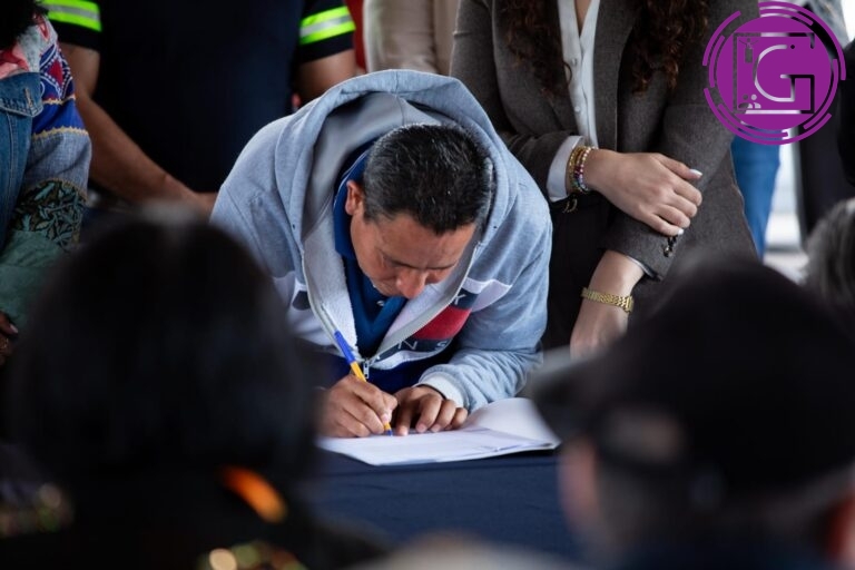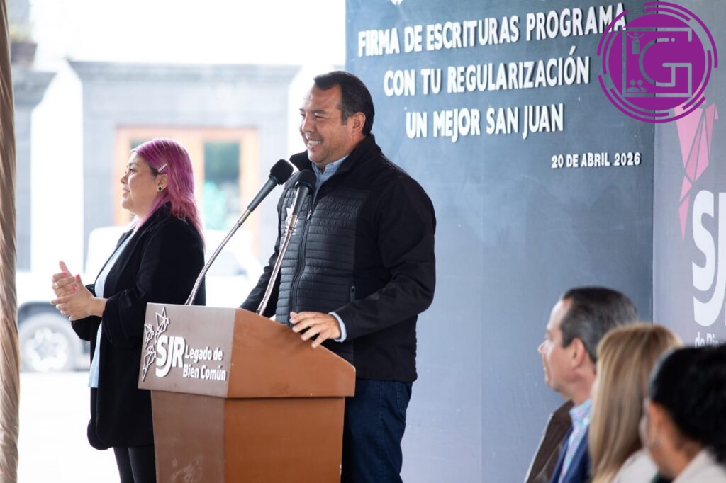 Para brindar tranquilidad y certeza jurídica a las familias sanjuanenses sobre su patrimonio, el presidente municipal de San Juan del Río, Roberto Cabrera Valencia, encabezó la firma de escrituras del Programa “Con Tu Regularización Un Mejor San Juan” en la Plaza Independencia, donde 146 escrituras públicas fueron firmadas.
