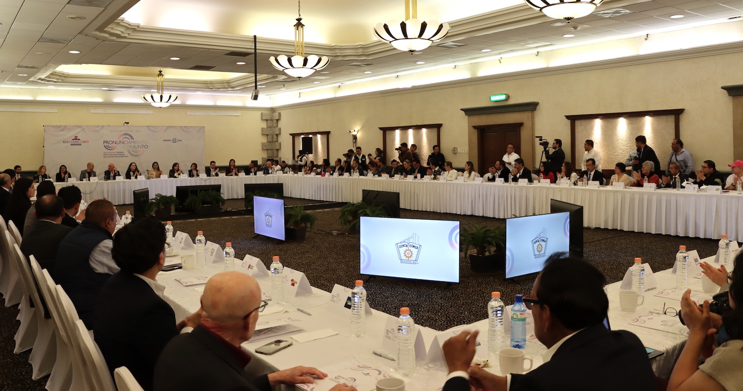 El Instituto Electoral del Estado de Querétaro (IEEQ) suscribió con más de 80 organizaciones de la sociedad civil, instituciones de educación superior, organismos empresariales, medios de comunicación, partidos políticos y ciudadanía el “Pronunciamiento Conjunto de Civilidad y Buenas Prácticas Electorales en el Estado de Querétaro”.