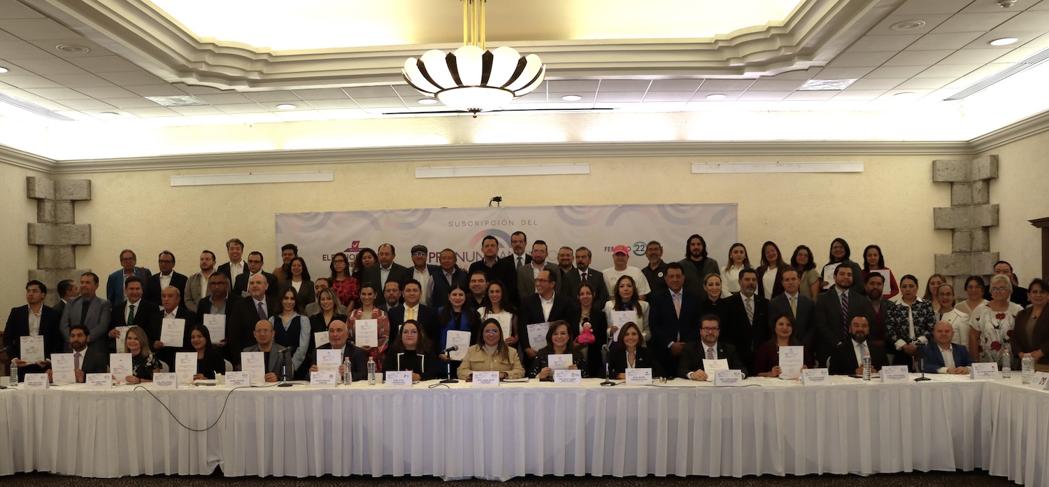 La firma pública del documento se realizó a 100 días de la jornada electoral del próximo 2 de junio, con el objetivo de contribuir a que el Proceso Electoral Local 2023-2024, por el que se renovará la integración del Congreso del estado y los 18 ayuntamientos, se desarrolle con apego a los valores democráticos e integridad electoral.