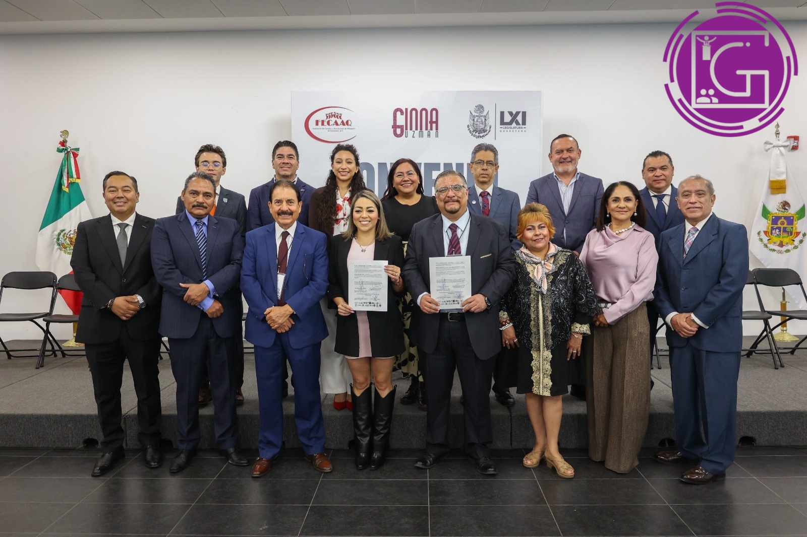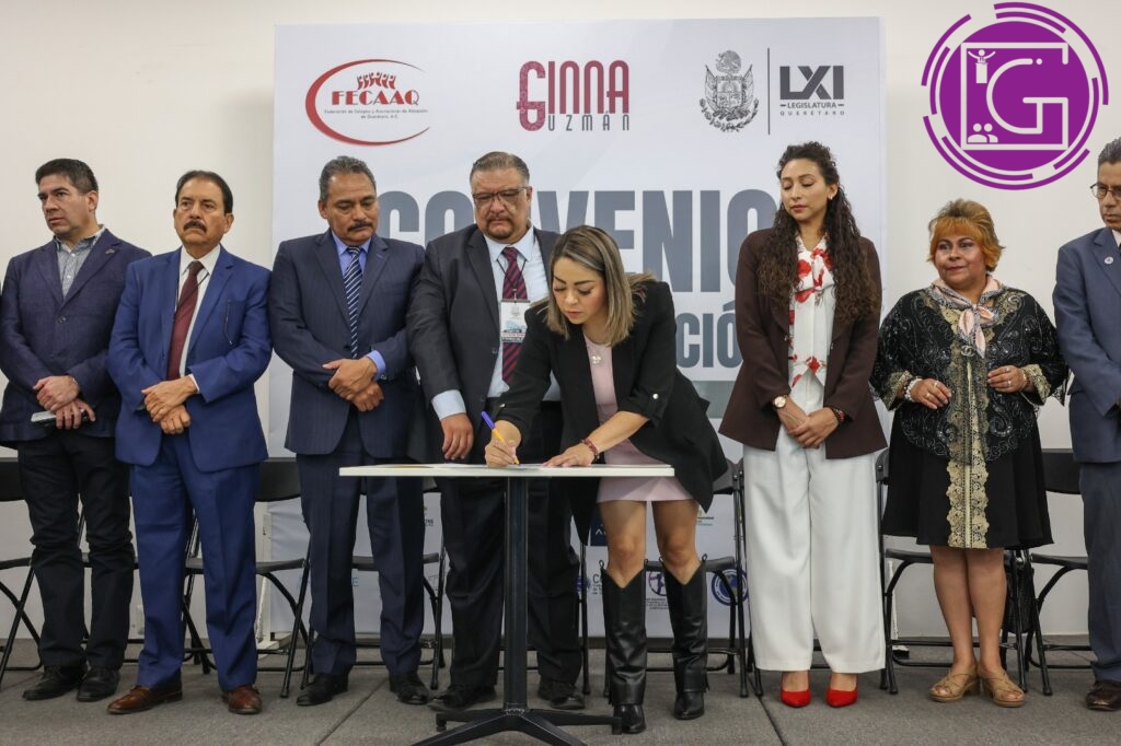 La presidenta de la Mesa Directiva, diputada Gina Guzmán, firmó un Convenio de Colaboración entre el Poder Legislativo del Estado, a través suyo, y la Federación de Colegios y Asociaciones de Abogados de Querétaro, A.C. (Fecaaq).
