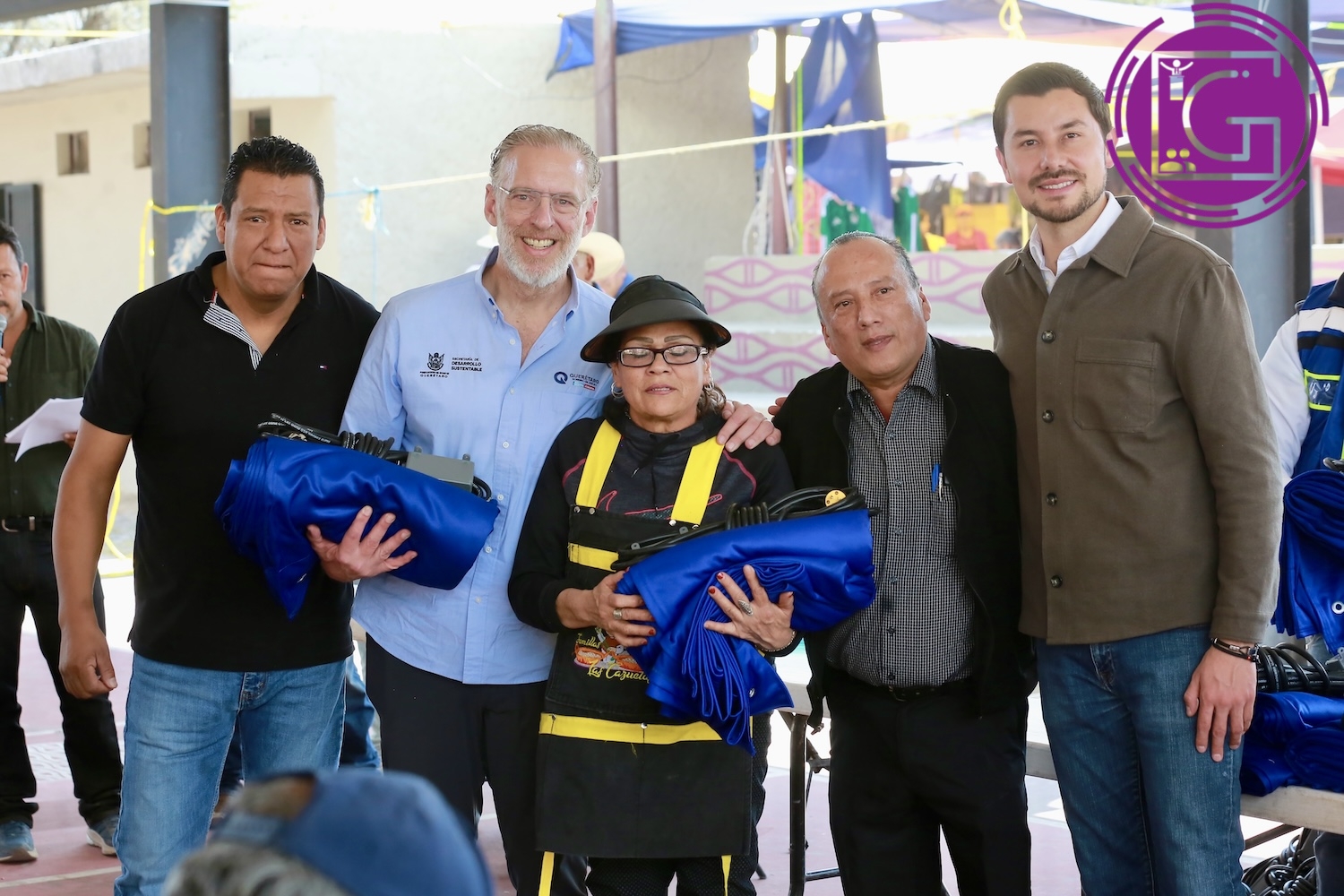 Con el objetivo de fortalecer las condiciones laborales de los comerciantes del tianguis Jade de Tequisquiapan, el titular de Desarrollo Sustentable (Sedesu), Marco del Prete, encabezó la entrega de kits de lonas y extensiones eléctricas a 100 integrantes de la agrupación.