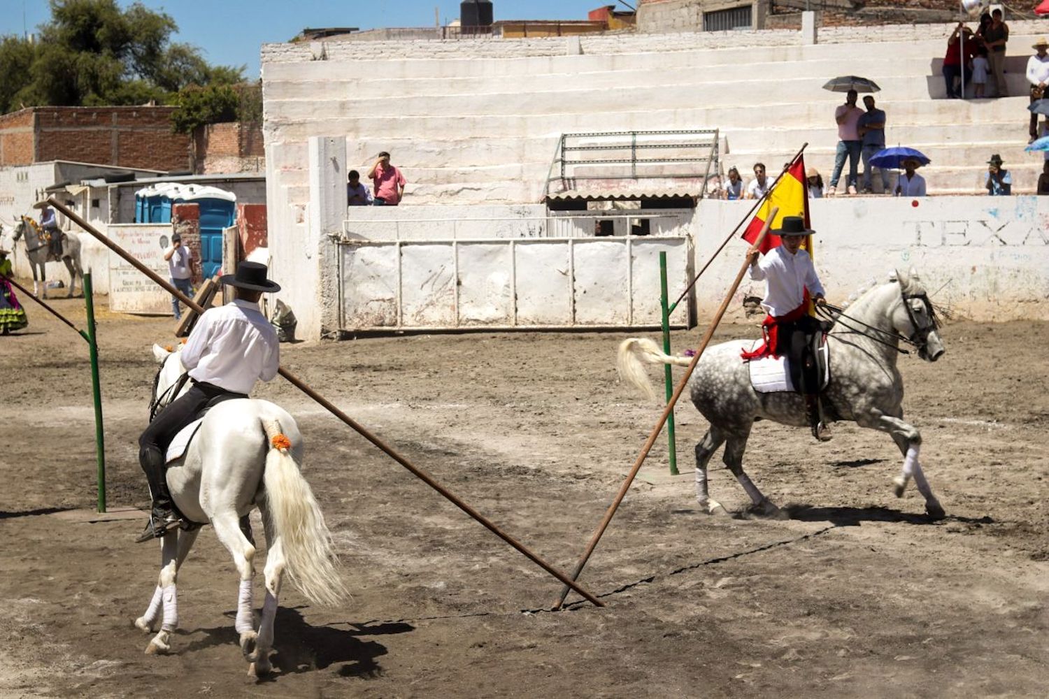 Posteriormente, se dio paso a los honores a las banderas de México y España, para continuar con los actos ecuestres que iniciaron con el primer número “Conquista”, protagonizado por un grupo de bailarines prehispánicos.