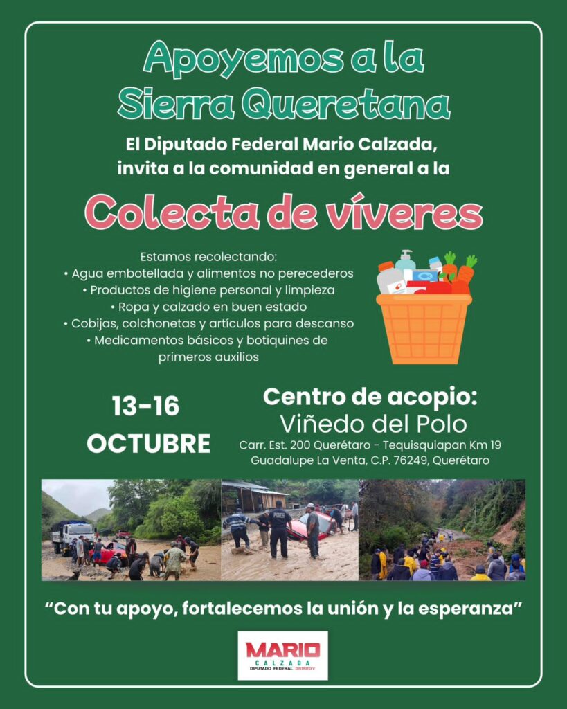 “Querétaro siempre se ha distinguido por su espíritu solidario. Hoy, las familias de la Sierra Gorda necesitan de nuestra empatía y apoyo. Con cada aportación, fortalecemos la unión y la esperanza”, expresó Mario Calzada.