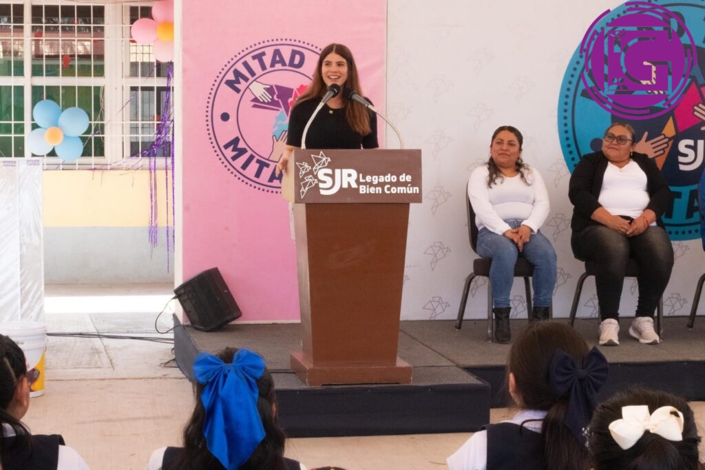 Como parte de las acciones y actividades del Programa “Mitad Tú, Mitad Yo”, implementado por el Sistema Municipal para el Desarrollo Integral de la Familia (DIF) de San Juan del Río, la presidenta del organismo, Gina Sánchez Barrios, entregó material didáctico, deportivo, mobiliario, equipo y artículos para aplicación de pintura a la escuela primaria Víctor Rosales, ubicada en Santa Matilde.