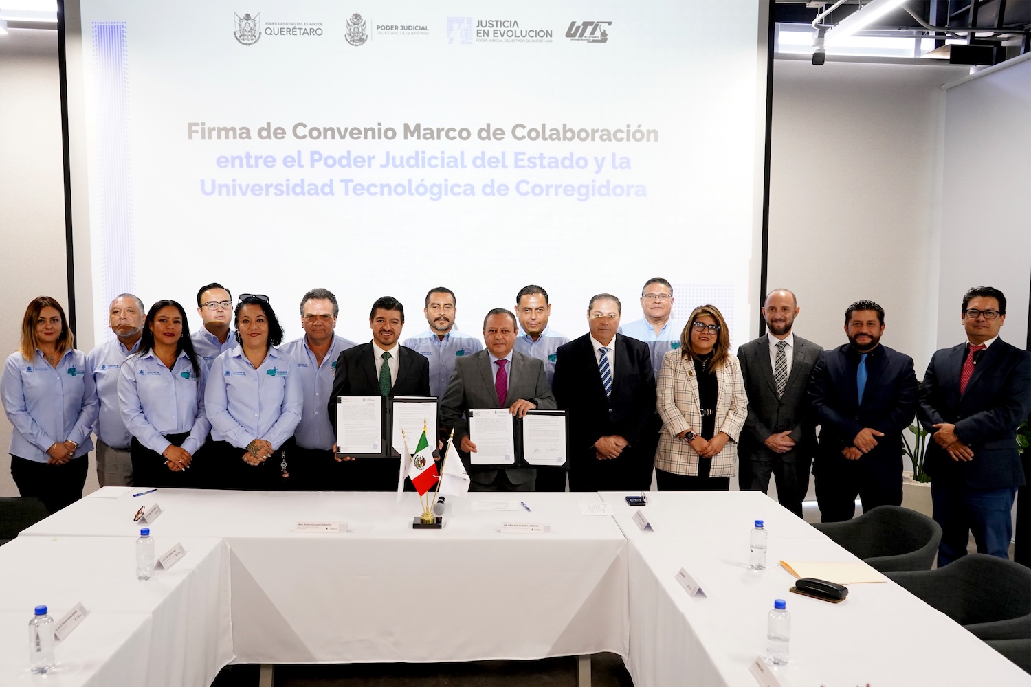 El rector de la Universidad Tecnológica de Corregidora (UTC), Alberto Lugo Ledesma, y el magistrado presidente del Poder Judicial del Estado de Querétaro, Braulio Guerra Urbiola, celebraron la firma de un convenio de colaboración con el propósito de fortalecer la educación, la formación jurídica, el desarrollo tecnológico y el servicio público a través de acciones conjuntas.