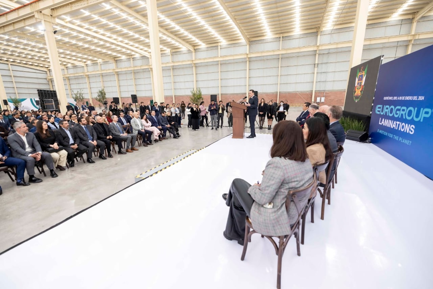 Querétaro va en el camino correcto y es momento de levantar la mano en el nuevo fenómeno de la electromovilidad que viene a nivel mundial, que junto con la relocalización de las empresas está listo, puesto y dispuesto para recibir a las inversiones, afirmó el gobernador, Mauricio Kuri González, al inaugurar la tercera planta de la empresa Eurotranciatura Laminaciones Eurogroup en el estado, en la que se invierten más 50 millones de euros entre este año y los próximos tres, misma que proyecta generar alrededor de 500 nuevos empleos, desde donde se fabricarán productos metálicos forjados y troquelados.