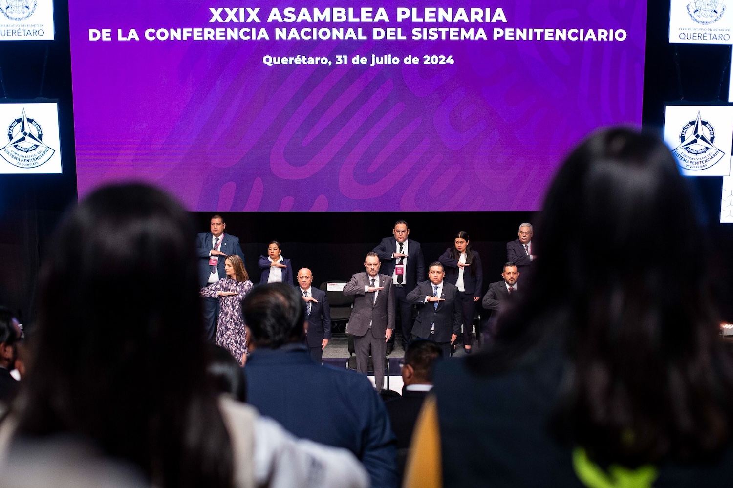 En la Conferencia Nacional del Sistema Penitenciario, sesionan autoridades penitenciarias de las 32 entidades federativas y funcionarios de la Comisión Nacional de Seguridad, representantes de distintas instituciones privadas, de la sociedad civil y organismos autónomos, para analizar los avances y retos que enfrenta el Sistema Nacional Penitenciario.
