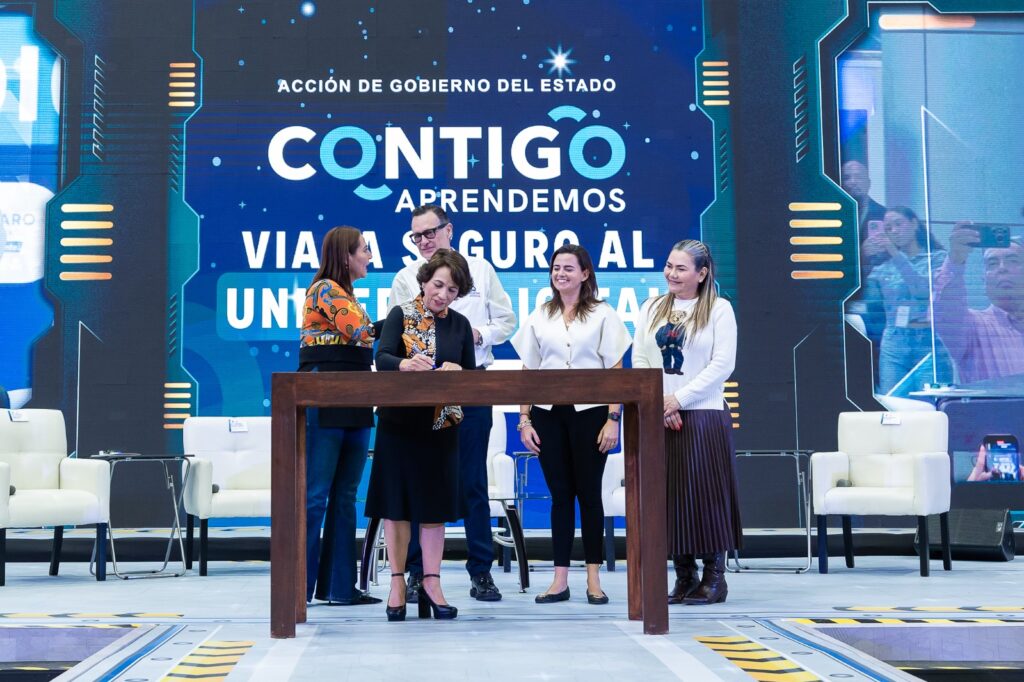 El titular del Poder Ejecutivo estatal, Mauricio Kuri González, encabezó la inauguración del evento “Contigo Aprendemos 2025”, que busca promover el uso responsable de la tecnología y la construcción de entornos digitales seguros para niños y adolescentes, a través de conferencias, talleres, presentaciones artísticas, zonas interactivas y espacios de convivencia. Durante el encuentro también se firmó el Pacto “10 por la lectura”, orientado a fomentar el gusto por los libros.
