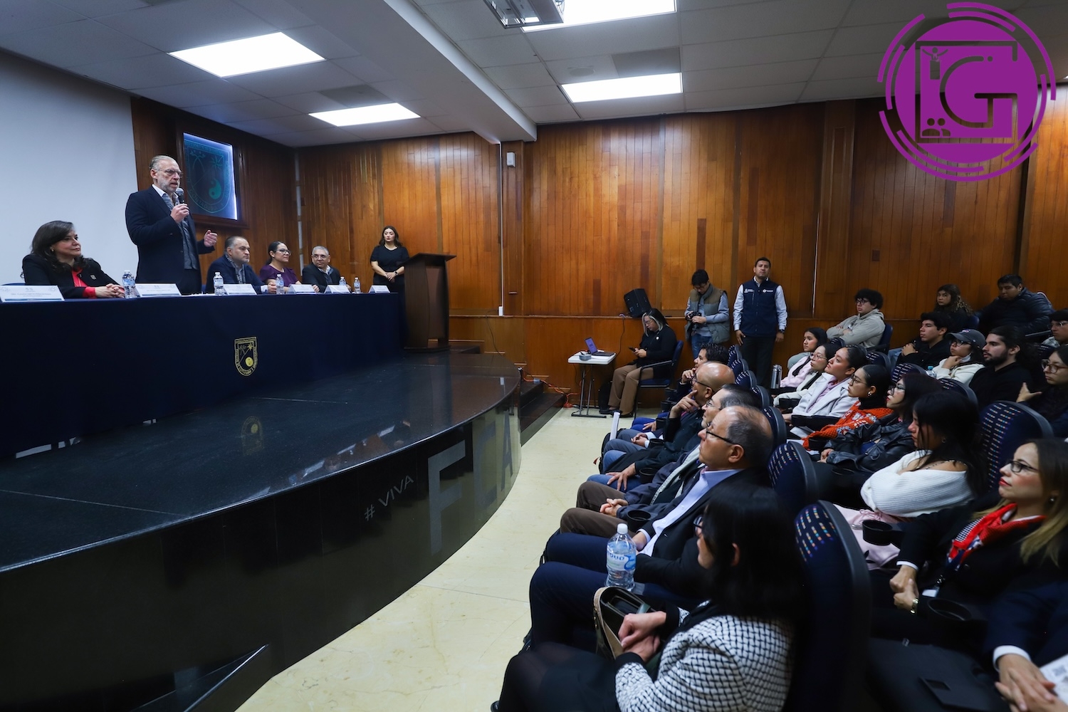 El director de la FCA, Omar Bautista Hernández, expresó su agradecimiento a los presentes de distintos semestres por su entusiasta participación en esta jornada, impulsada por la División de Estudios de Posgrado. Reconoció el mérito de quienes buscan ampliar sus conocimientos más allá del aula, destacando que este tipo de experiencias serán de gran relevancia conforme avancen en su preparación, exhortándolos a involucrarse activamente en estas iniciativas.