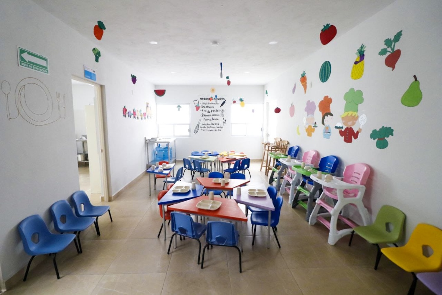 En la Estancia Infantil Chiquitzin se realizaron trabajos de reacondicionamiento estructural, de cableado y de conexiones de servicios básicos; se adquirió material didáctico y mobiliario; se llevaron a cabo acciones de pintura y de acabados. Cuenta con una capacidad para atender a entre 45 y 55 niños y niñas en sus salas para lactantes, maternal, cocina, comedor, lactario y área de juegos, además de espacios administrativos y de almacenamiento.