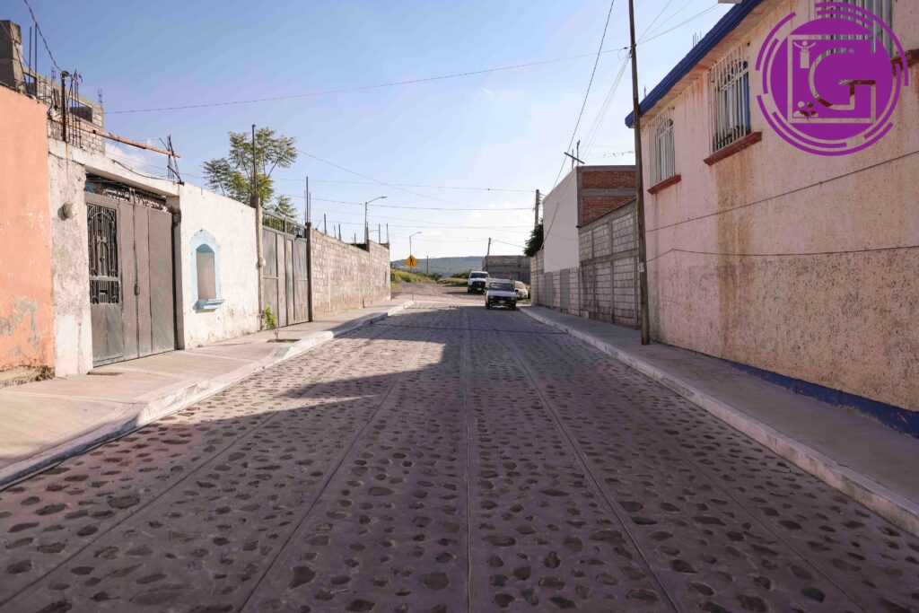 La titular de la Secretaría de Obras Públicas del municipio de Corregidora, Viridiana Nava, detalló que el proyecto integró la sustitución de empedrado empacado en tepetate por empedrado empacado en mortero con recuperación de la piedra y construcción de banquetas y guarniciones, además del suministro del drenaje sanitario.