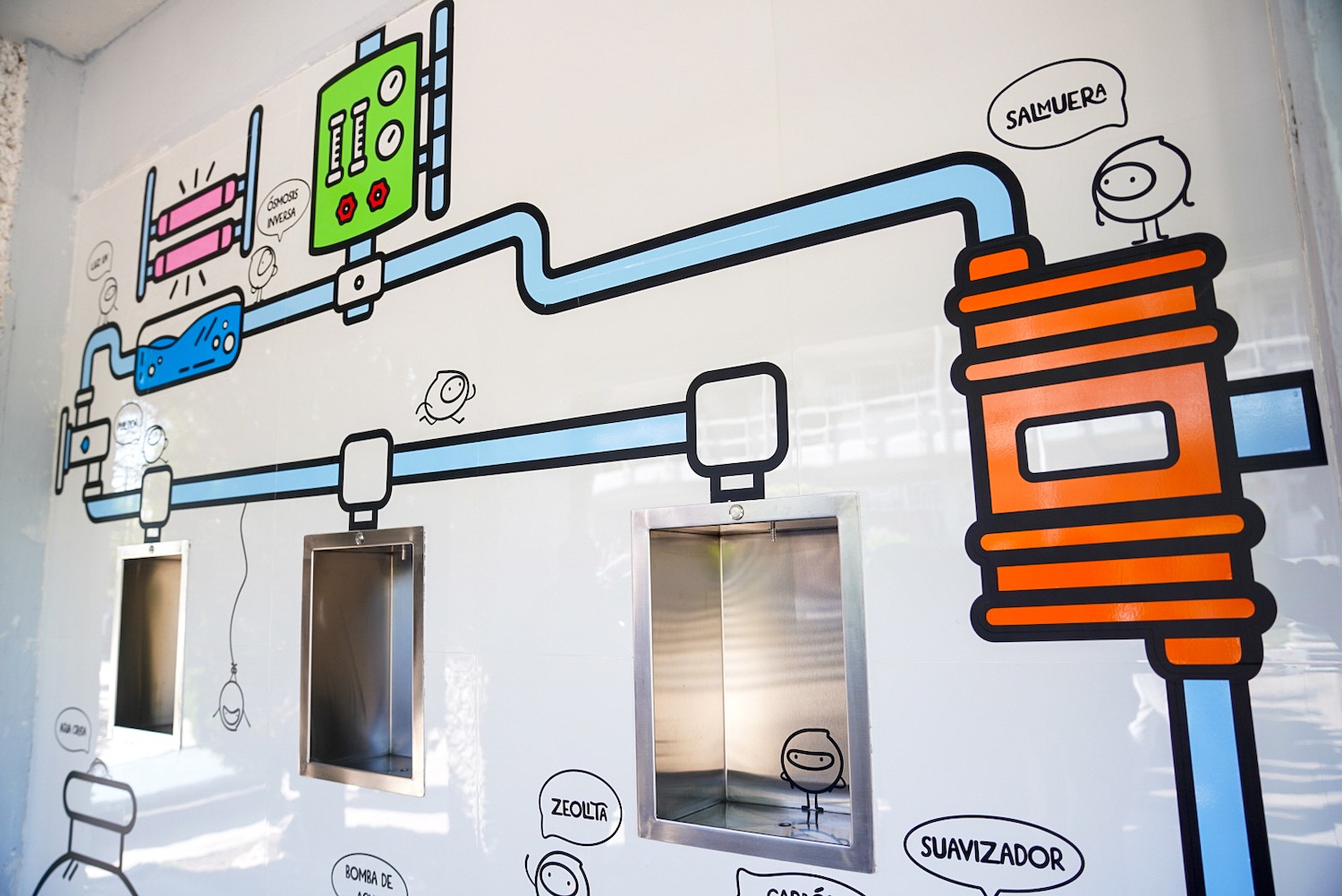 “Pasa por una red de zeolita, carbón activado, es digamos una especie de filtrado, después por salmuera y finalmente por un proceso de osmosis inversa en el cual se finaliza con luz ultravioleta y al final viene un pulidor que la intensión es el poder mejorar las propiedades del agua después de que está completamente limpia, que sea incolora, insabora e inodora”, detalló Toledano Ayala.