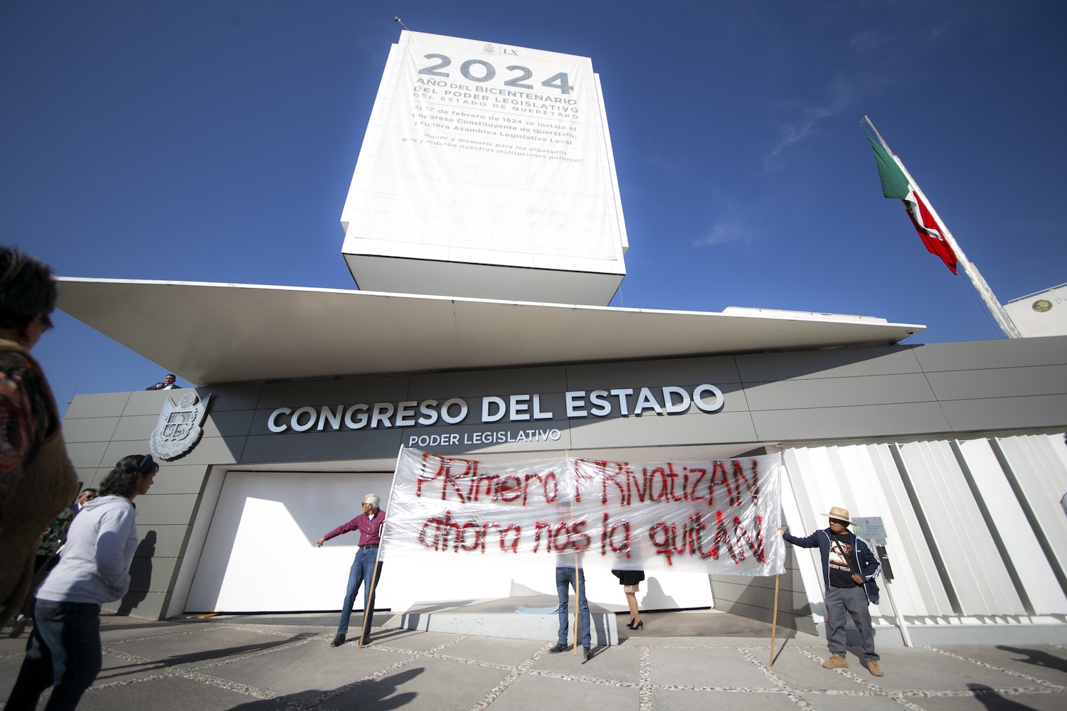 En rueda de prensa en la Cámara de Senadores, el legislador morenista denunció que, con esa ley privatizadora que aprobaron en 2021 y hoy reformada, dos terceras partes del agua disponible en Querétaro se encuentra acaparadas por la industria; mientras que sólo una tercera parte se distribuye entre la población.